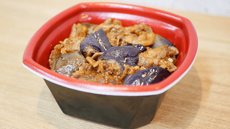 なすと豚肉をサムジャン(甘辛いタレ)で味付け(税込572円)